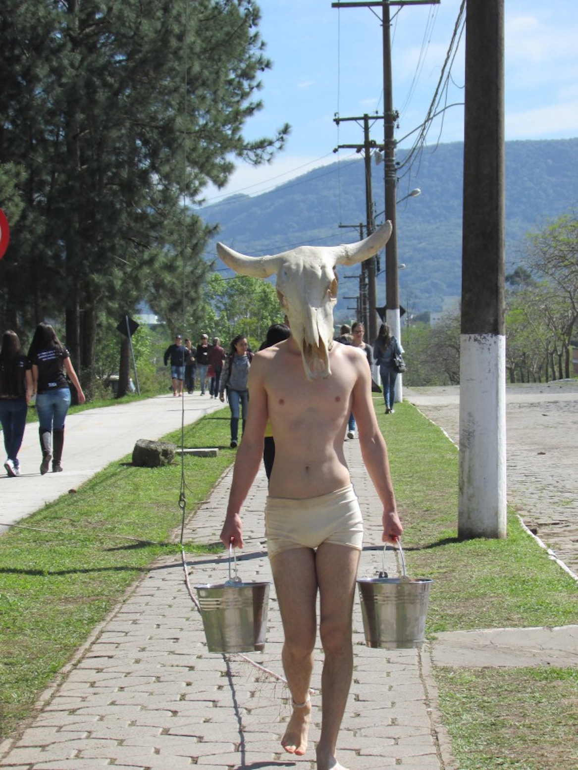 The performance emerged as an attempt at personal insurrection. Its visual reference is located in the rural ritual of dismembering animals for food purposes. After the animal’s death, a group of people use a rope to lift the dead body in order to remove its skin and entrails and then cut it into the parts that suit them. Like a cow alone, without a herd, I perform alone. I do not move among a herd, which does not mean that I do not worry about knowing where it is. I am a head of cattle that, even in the act of death, needs to lift itself. The body itself that surrenders itself to death is the agent that pulls the rope. A part needs to become passive, permissive, dead. Another part needs to exert the force to lift its own passive part. This was a cycle of uroboric self-elevation, a futile effort and a search for transformation. (Excerpt from the article Arremates em torno da suspensão como força transindividual na Performance Pequena Morte, 2017.)
